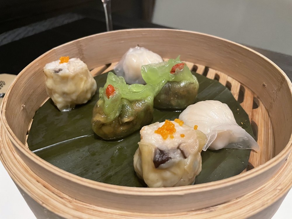 Dim Sum Platter consists of Pork Prawn dumpling Siew Mai, King Prawn Dumpling Har Kau and vegetarian Dumpling.